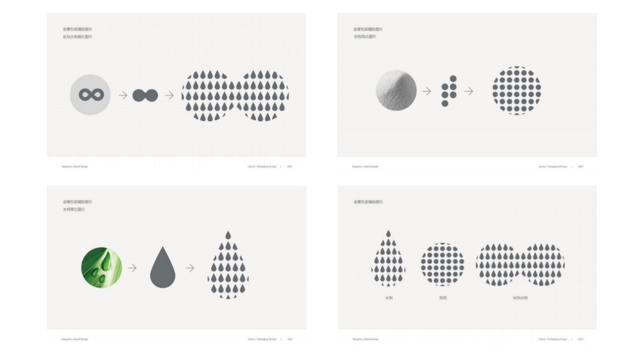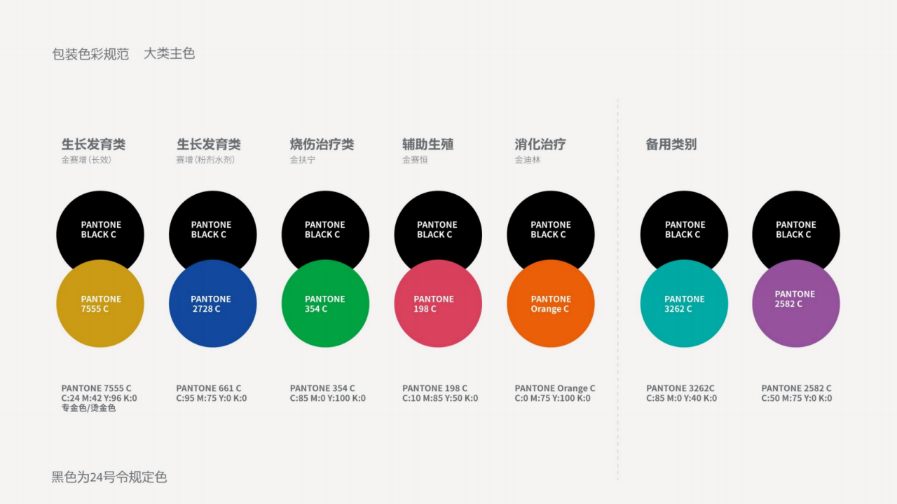 本项目为金赛药业构建品牌视觉体系及包装色彩规范,围绕“专业分科、统一识别”原则,梳理各品类主色及视觉语言。生长发育类产品采用活力蓝橙体系,辅助生殖与消化治疗则强化科技蓝与绿色感知,烧伤治疗聚焦修复与信任感。整体设计引入水滴形态、水环形态与粉剂简化圆形,传达生命延续与科学精准的品牌价值。