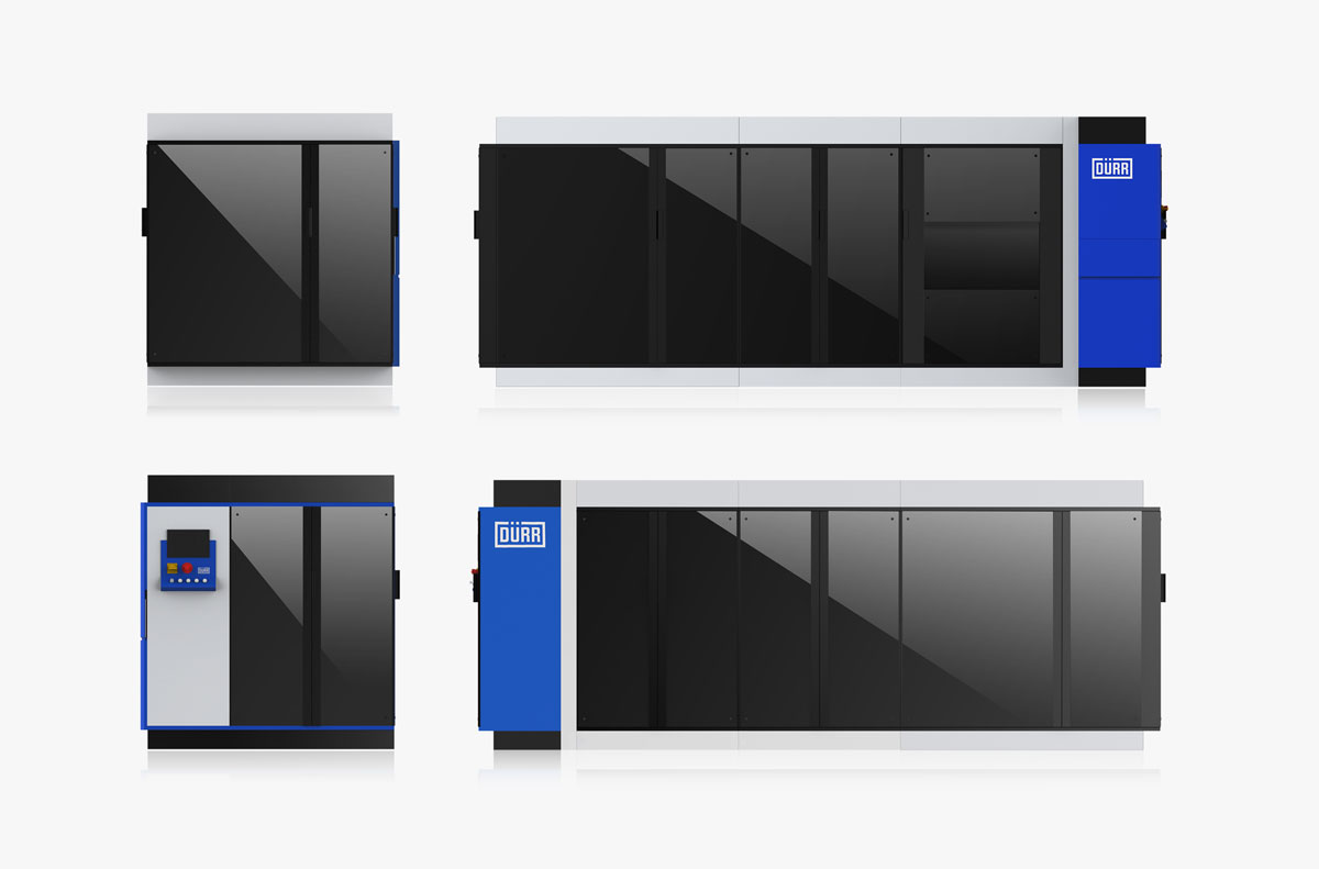 飞鱼设计团队以“高效、严谨、模块化”为核心理念,打造简洁大气、逻辑清晰的工业美学形象。整体采用蓝、灰、黑三色组合,强化品牌识别与技术属性,系统结构灵活组合、适应多样生产需求,充分体现杜尔在智能制造与清洁技术领域的专业实力与领先地位。