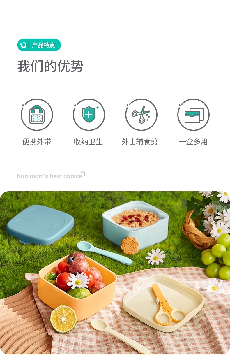 飞鱼设计团队为母婴领导品牌可优比打造多功能组合式便携婴儿外出碗设计,一盒六件大容量设计,小身材大容量,宝宝吃饭一套搞定,物超所值。多场景应用,6个月辅助进食、12个月自主进食、1岁后可当作零食盒便携使用。搭配组合式妈咪包,出行更有范儿。