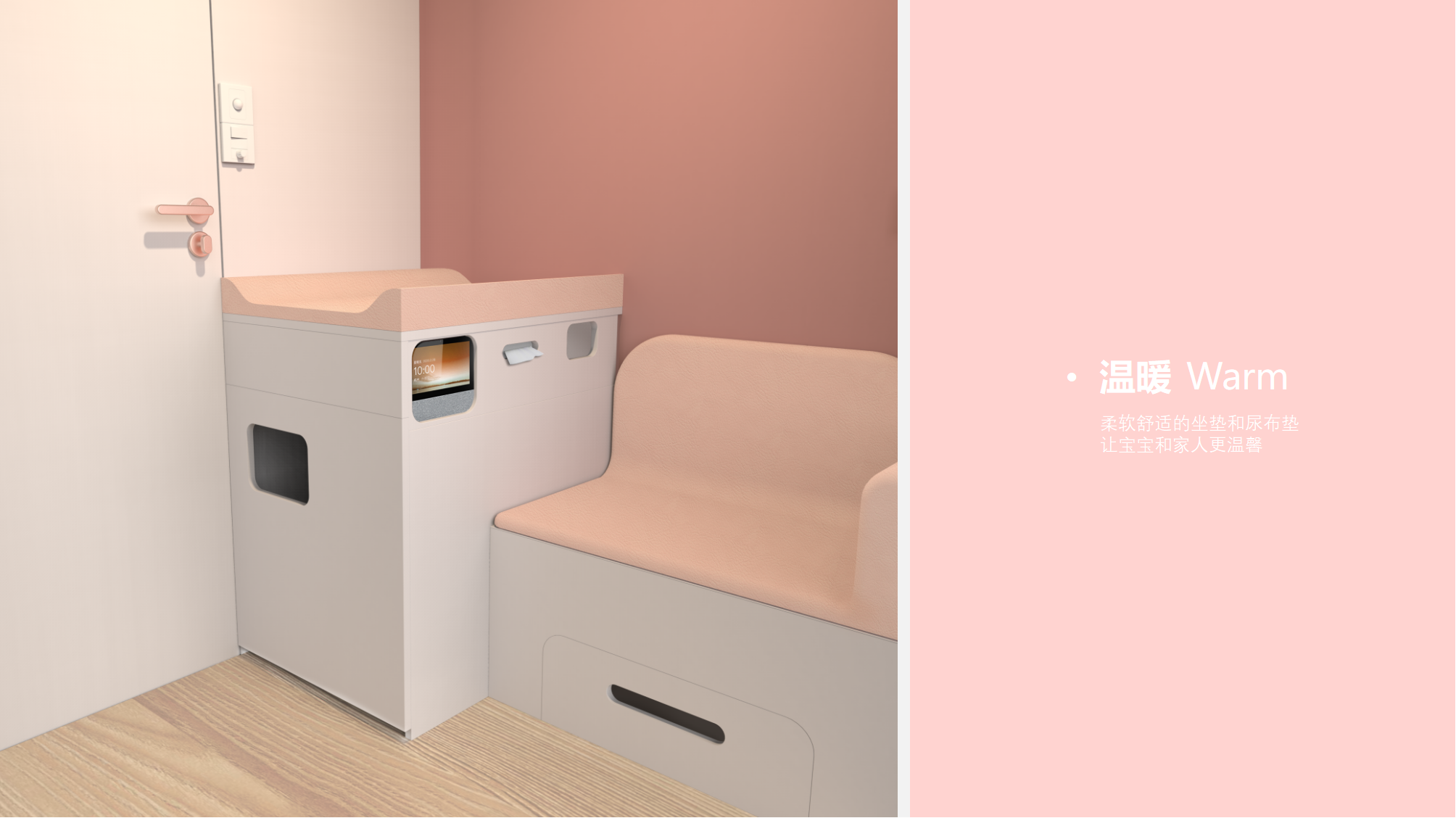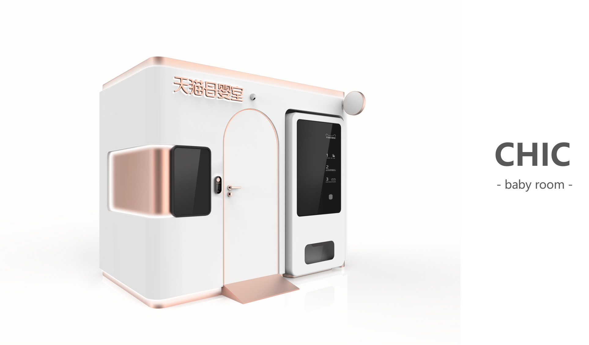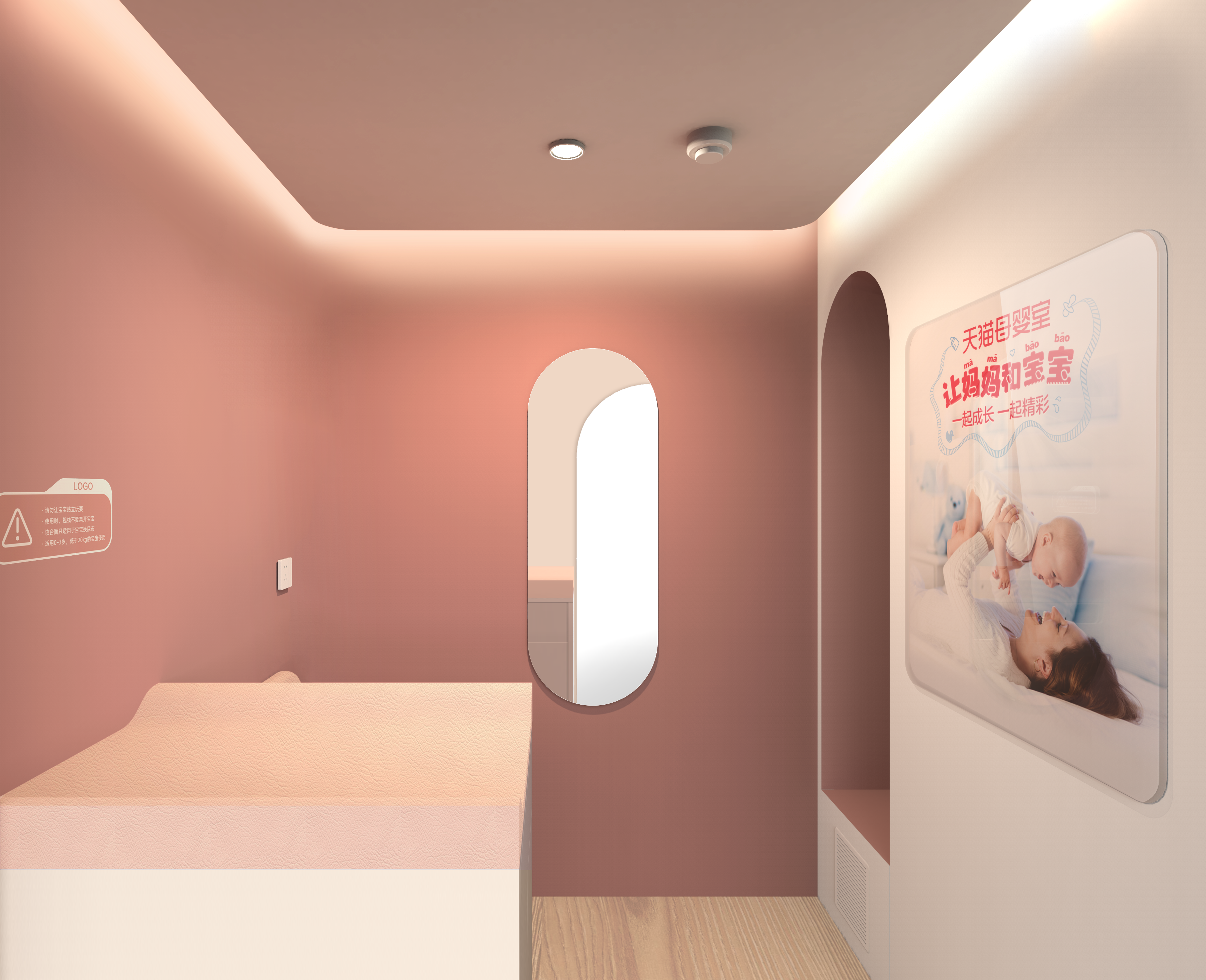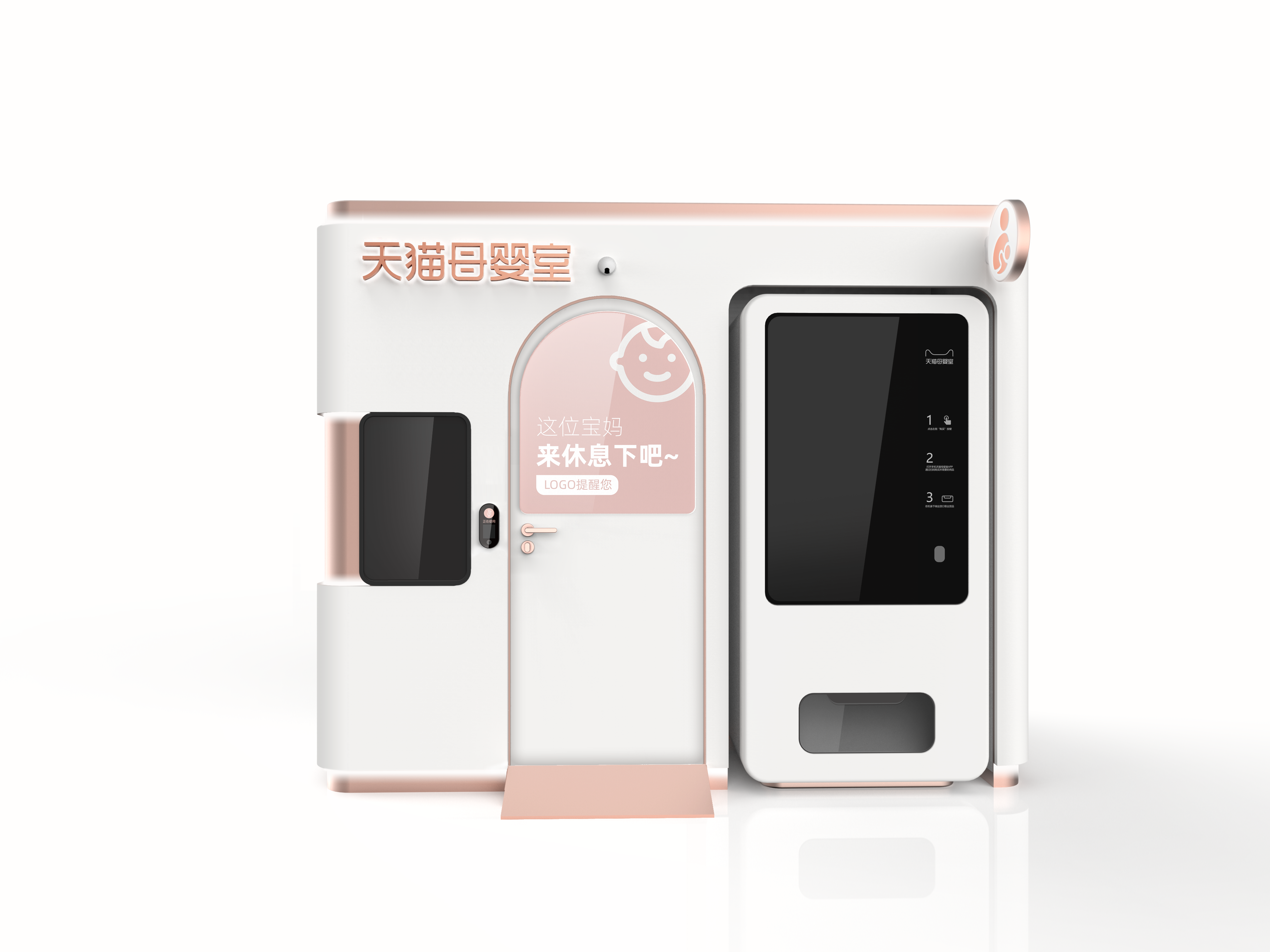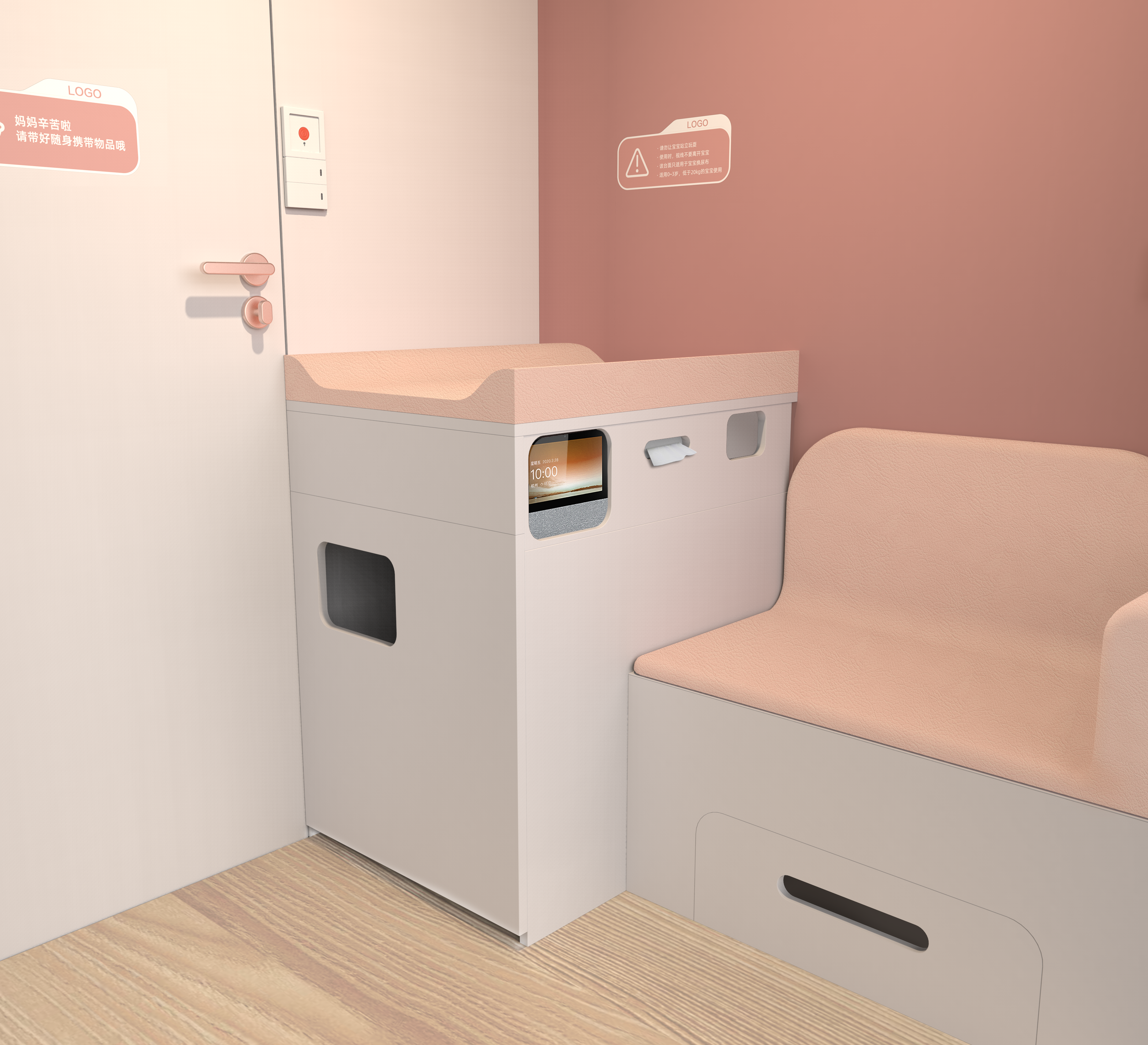 飞鱼设计团队携手天猫,关爱新生代妈妈们的公共场所哺乳需求。设计出能够帮助妈妈解决出行喂哺、换尿不湿、哄睡等一站式解决多场景方案,解决新生代妈妈们公共场所哺乳难的问题。母婴室空间利用合理,可以兼顾婴儿推车放置,整体空间面积小于4平米,让商业空间更自由,适配地铁站、高铁站、飞机场、医院、商场等多元公共空间。