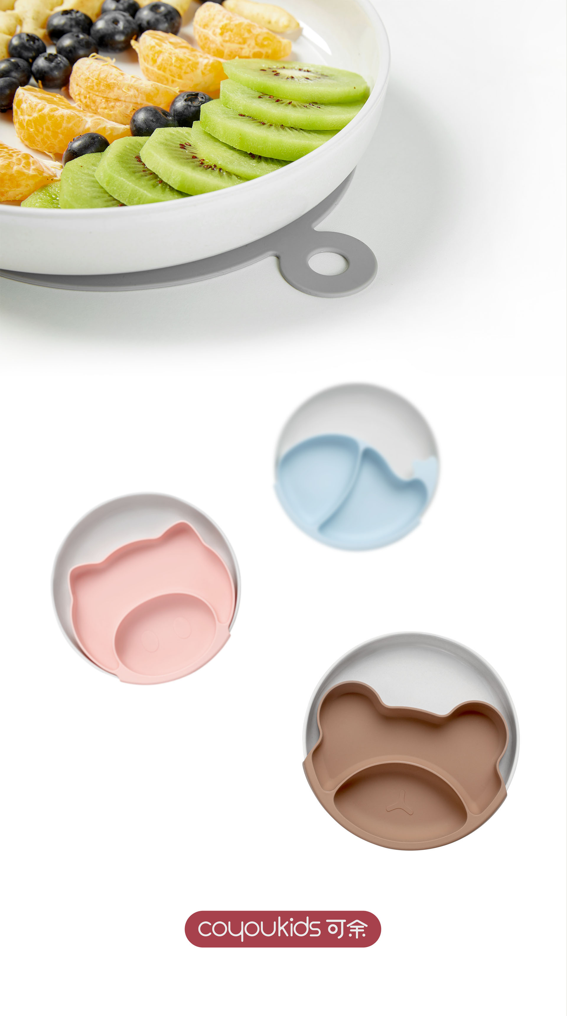可余coyoukids是飞鱼设计整合设计孵化的设计师妈妈婴童用品品牌。我们以设计师妈妈的身份,分享我们为孩子们设计的生活与成长用品。坚持原创设计,做有趣的、陪伴儿童成长的产品,专注于儿童产品的体验和创新,同时把东方育儿理念倾注其中,打造更适合中国孩子使用的产品。百变餐盘是一款成长型儿童餐具,萌趣的卡通动物形象,不仅激发了妈妈创作与分享的兴致,也让颜控宝宝们爱上吃饭。奇思妙想的创意摆盘,让餐餐都有惊喜,科学配餐、避免串味的同时,还能开发宝宝大脑的创意空间。