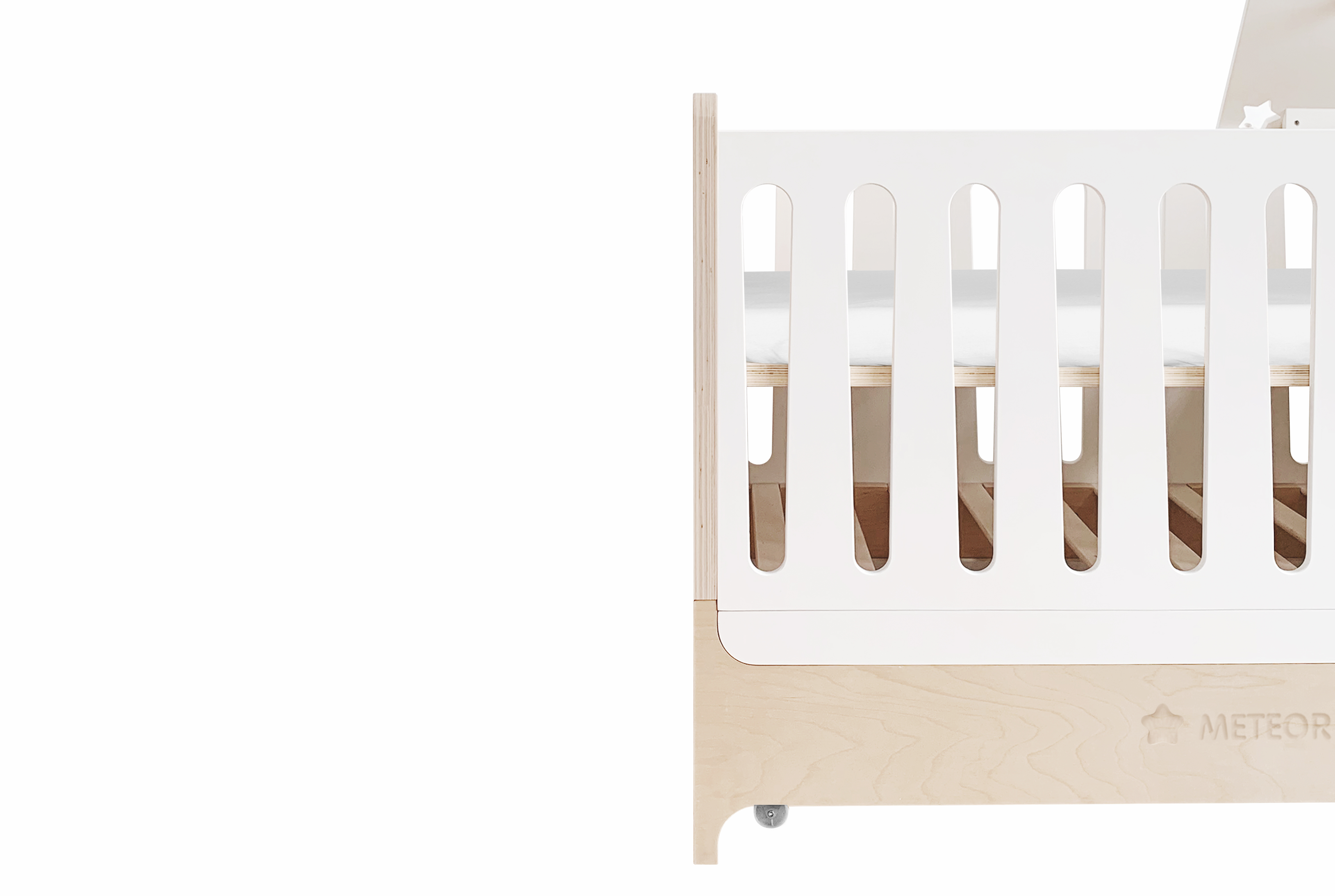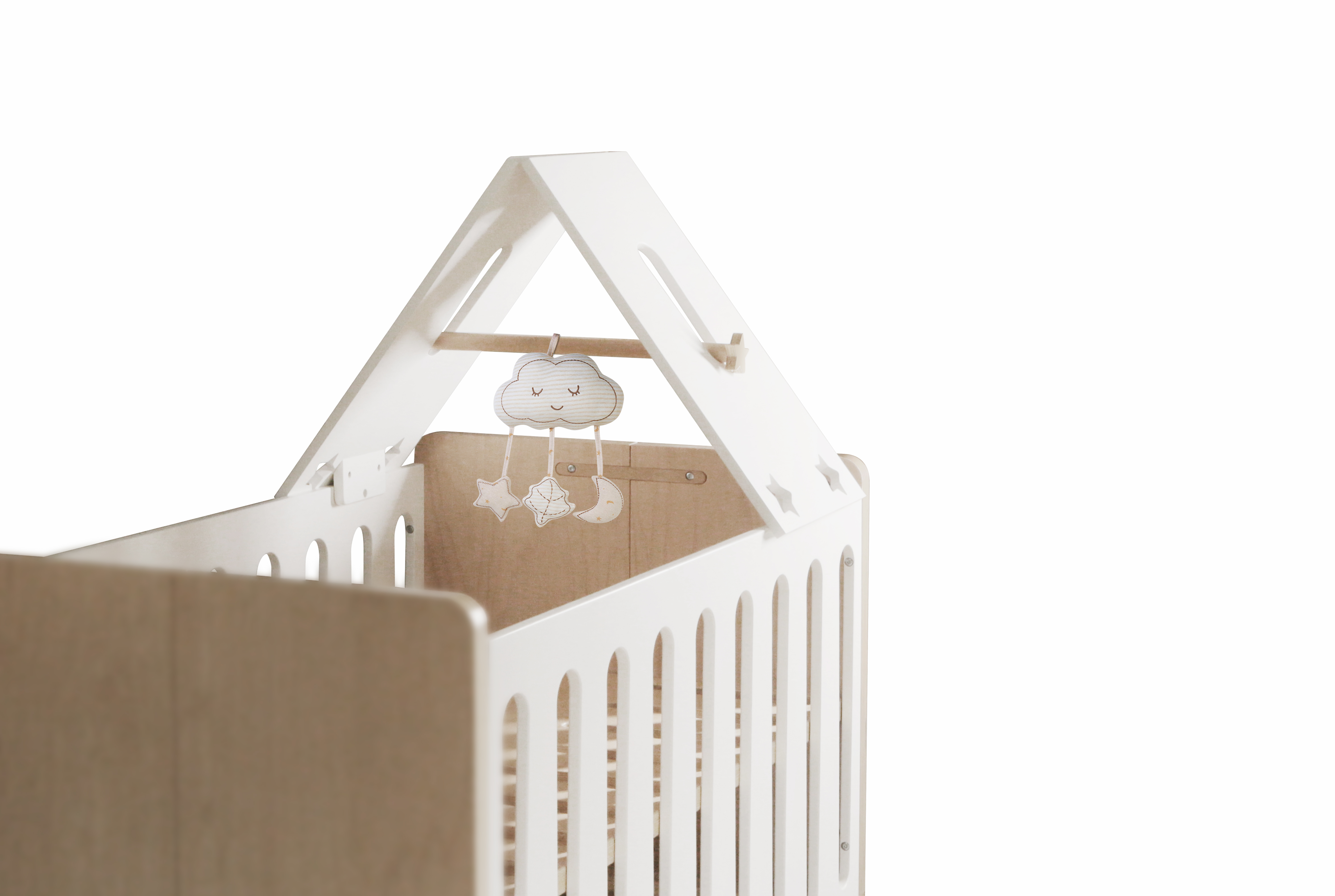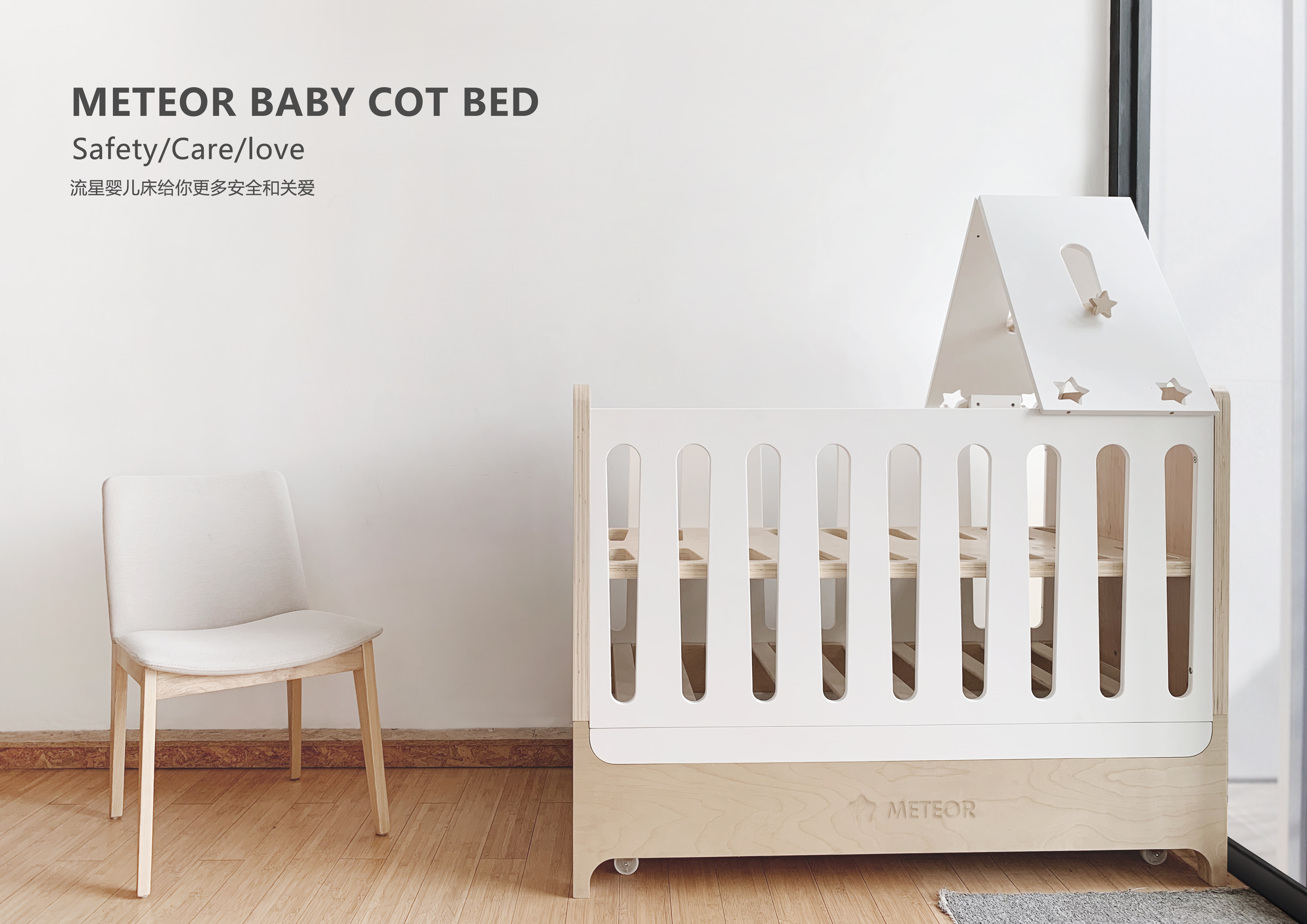 飞鱼团队花了近半年的时间,进行多次结构验证和打样测试,:并模拟实际使用场景做用户测试,实现了设计图纸的初衷:0浪费、环保、超成长性的婴儿床。
